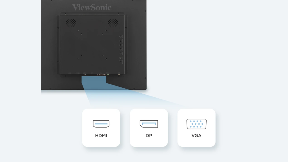| Đầu nối | USB 2.0 Type-B: 1 (for touch screen only) 3.5mm Audio in: 1 HDMI: 1 DisplayPort: 1 VGA: 1 Power In: DC socket |
