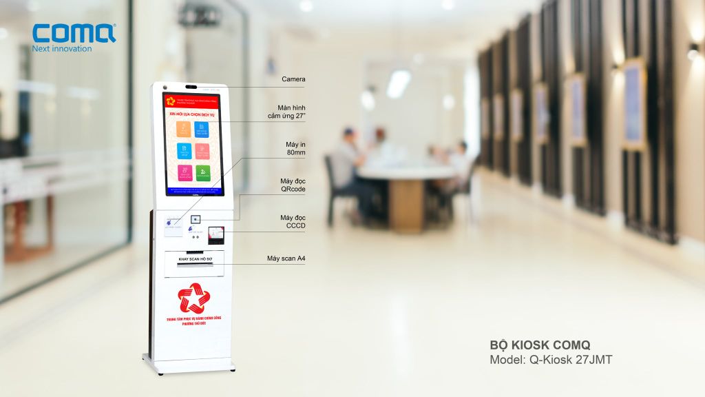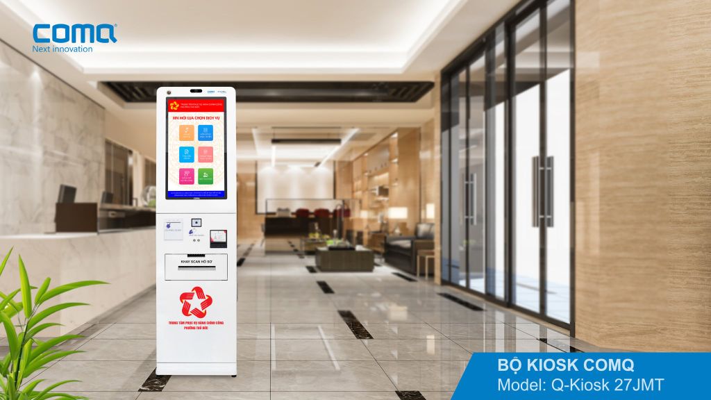 KIOSK Thông Minh ComQ Q-KIOSK 27SMT_Series là sản phẩm đa dụng cho các mục đích in cấp số, trong các hệ thống xếp hàng tư động tại ngân hàng, hành chính công, bệnh viện, hải quan, xăng dầu, bưu chính, điện lực ... Kiosk có tính năng đọc thẻ CCCD gắn chíp và giải mã 16 - 17 trường dữ liệu phục vụ Đề Án 06 (DA06) chuyển đổi số của chính phủ. Ngoài ra Kiosk hoặc có thể đóng vai kiosk self-service trong các nhà hàng, cửa hàng nhằm mục đích bán hàng tự động.